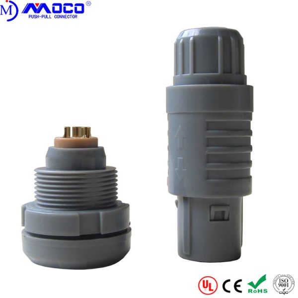 MOCO P series connectors are plastic Push-Pull connectors. They are widely used in medical devices, such as patient monitor, respirator,anesthetic machine.